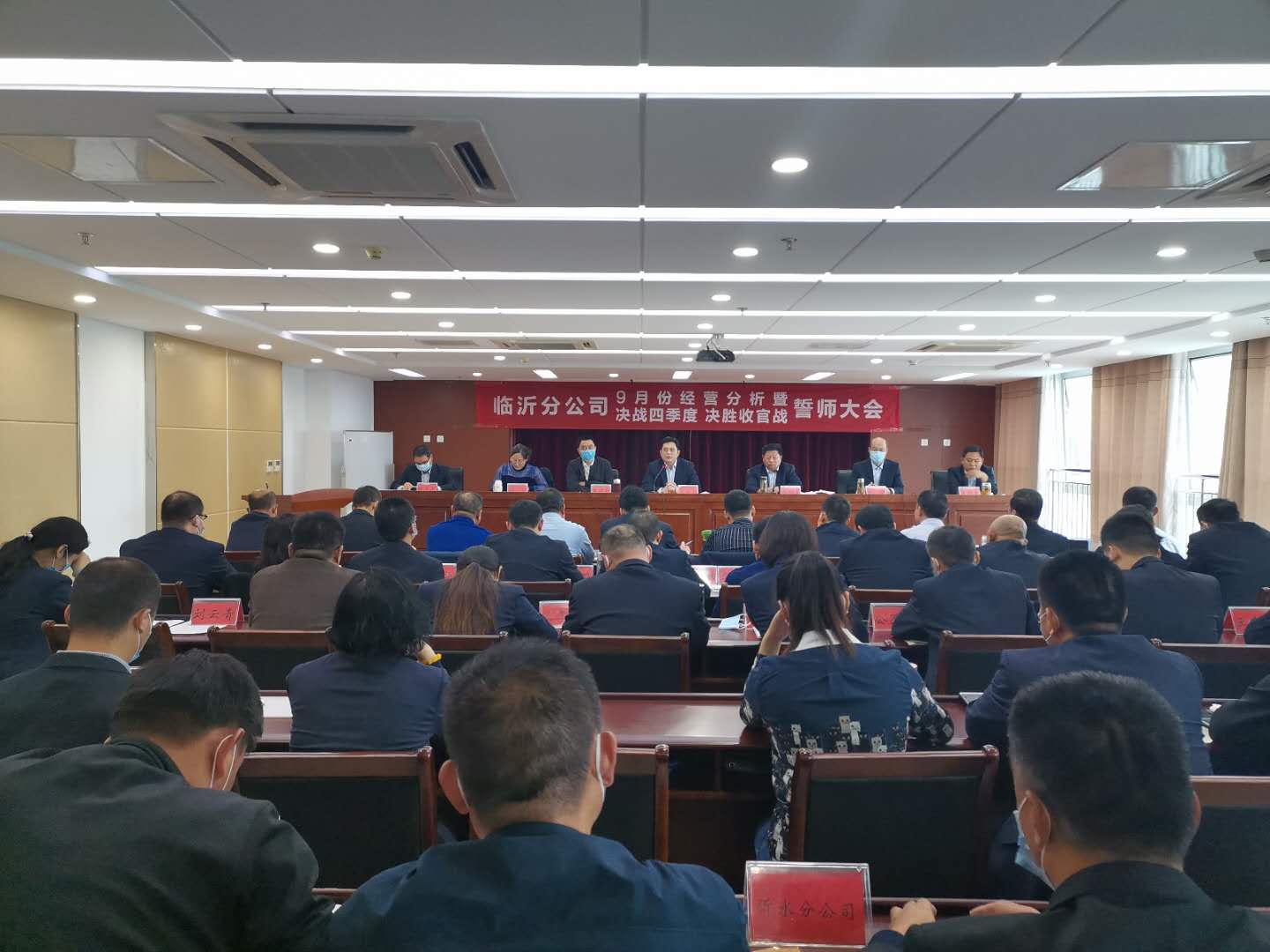 本網(wǎng)訊 10月13日,臨沂分公司召開9月經(jīng)分會暨“決戰(zhàn)四季度 決勝收官戰(zhàn)”誓師大會,深入分析公司前三季度形勢,研究部署下一階段重點工作,進(jìn)一步動員公司上下明確目標(biāo)定位,堅定必勝信心,決戰(zhàn)四季度,決勝收官戰(zhàn),確保全面完成年度任務(wù)目標(biāo)。